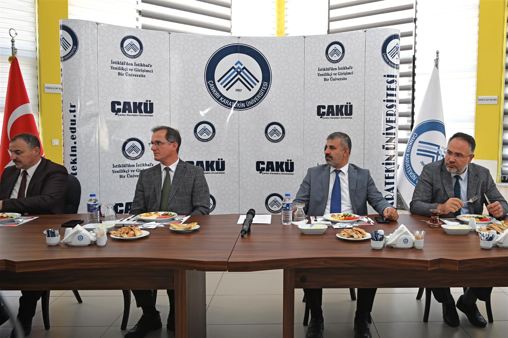 ÇANKIRI Karatekin Üniversitesi (ÇAKÜ) Rektörü Prof. Dr. Harun Çiftçi, ortak akıl, ortak yönetim anlayışı doğrultusunda, Çankırı`da faaliyetlerini sürdüren bazı sivil toplum kuruluşu (STK) başkanları ile bir araya gelmeye devam ediyor. Son olarak yapılan toplantıda, ÇAKÜ Rektörü Prof. Dr. Harun Çiftçi, Rektör Yardımcıları Prof. Dr. Hüseyin Odabaş, Prof. Dr. İbrahim Çiftçi, ÇAKÜ Genel Sekreteri Sadık Yılmaz ve sivil toplum kuruluşlarının yetkilileri hazır bulundu. Toplantıda eğitim, kültür ve sosyal sorumluluk alanlarında ortak yapılabilecek çalışmalar ve yeni akademik yıl öncesi öğrencilerin karşılaşacağı olası sorunlar, barınma imkanları ve çözüm önerileri hakkında değerlendirmelerde bulunuldu.