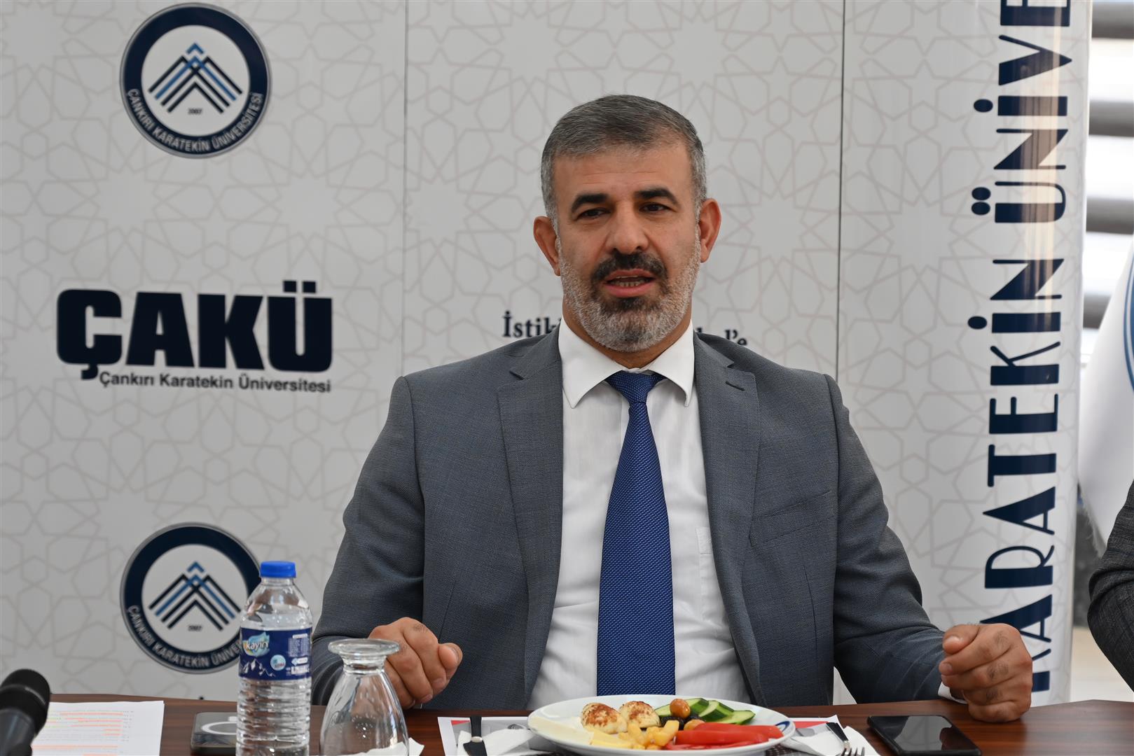 ÇAKÜ’nün stratejik hedeflerini paydaşlarıyla birlikte gerçekleştirmek istediğinin altını çizen Rektör Çiftçi, büyük bir insan kaynağına sahip olduklarına, bu kaynağın sadece Anadolu’dan değil, dünyanın değişik noktalarından beslendiğine dikkat çekti. Rektör Çiftçi, sözlerini şöyle sürdürdü: “Hepsinde farklı kültür, farklı dil, farklı davranış, farklı ahlaki değerler, farklı hedefler, farklı umutlar, farklı heyecanlar var. İşte böyle bir ortamda kendi hâkim düşüncelerimizi, hâkim olan kültürümüzü yaygınlaştırmak bir bakıma birlikte hareket etme zorunluluğumuzu da ortaya koyuyor. Eskiden bazı düşüncelerimizi sadece kendi aramızda ifade ederdik. Çok az bir kısmı uygulamaya icraata dökülebiliyordu. Şimdi öyle değil. Son 20 yılda Türkiye’de büyük bir zihniyet değişikliği gerçekleştirildi. Dolayısıyla milletiyle değerleriyle barışık bir yapımız var. Ümidimiz odur ki bu yapımızın güçlenerek devam etmesi ve uluslararası düzeyde de daha geniş bir etki alanı oluşturmamız. Bu etki alanını genişletmenin en kestirme yolu ise ortak hedeflerle birlikte çalışabilmekten geçiyor.”