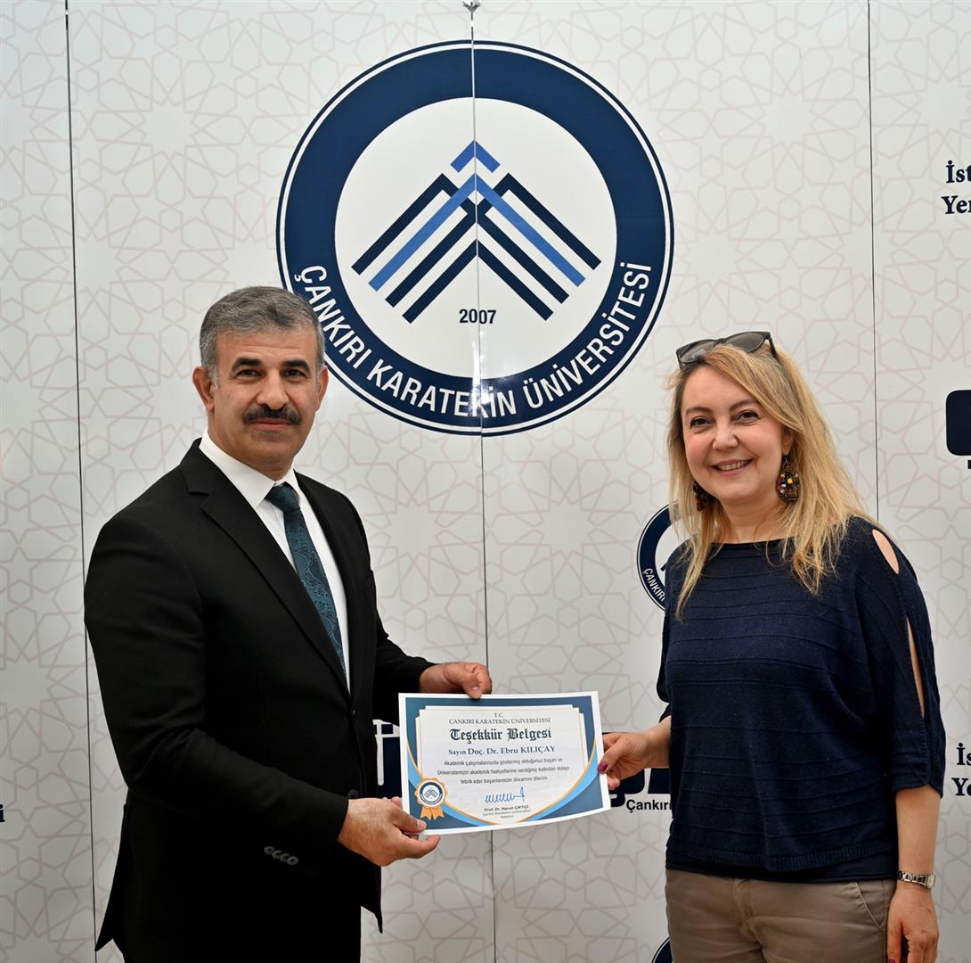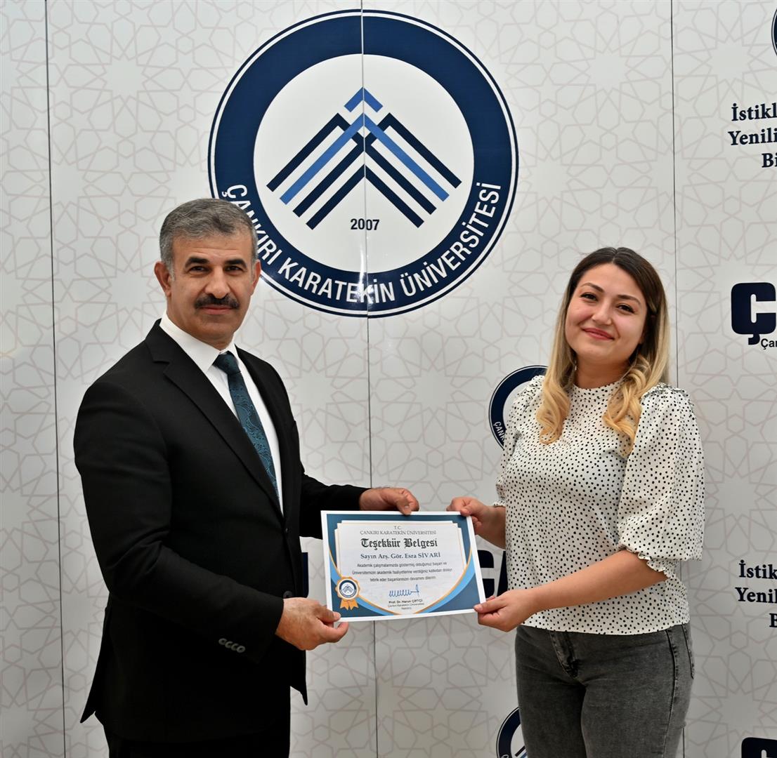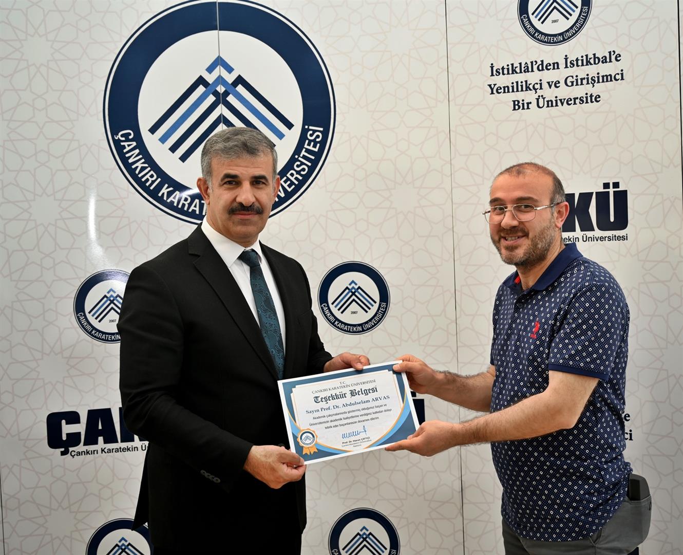 Rektörümüz Prof. Dr. Harun Çiftçi, akademik çalışmalarda başarı gösteren ve ÇAKÜ’nün akademik faaliyetlerine katkı sağlayan akademisyenlere teşekkür belgesi verdi