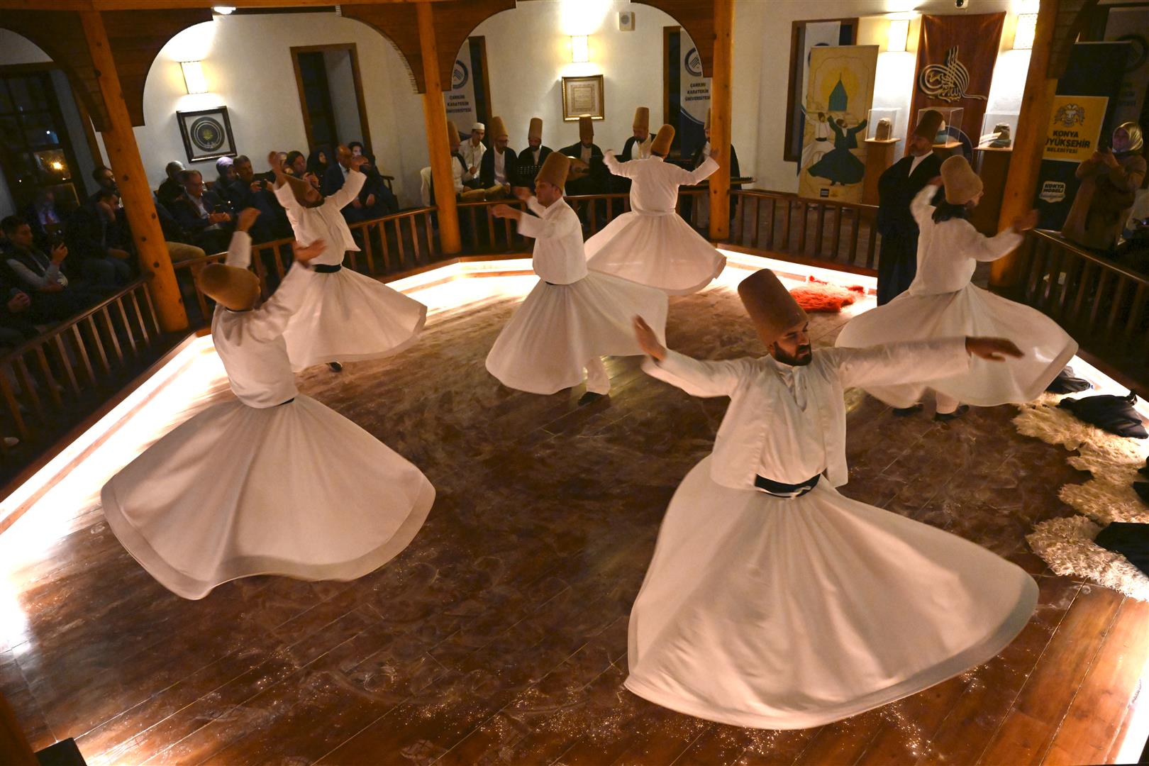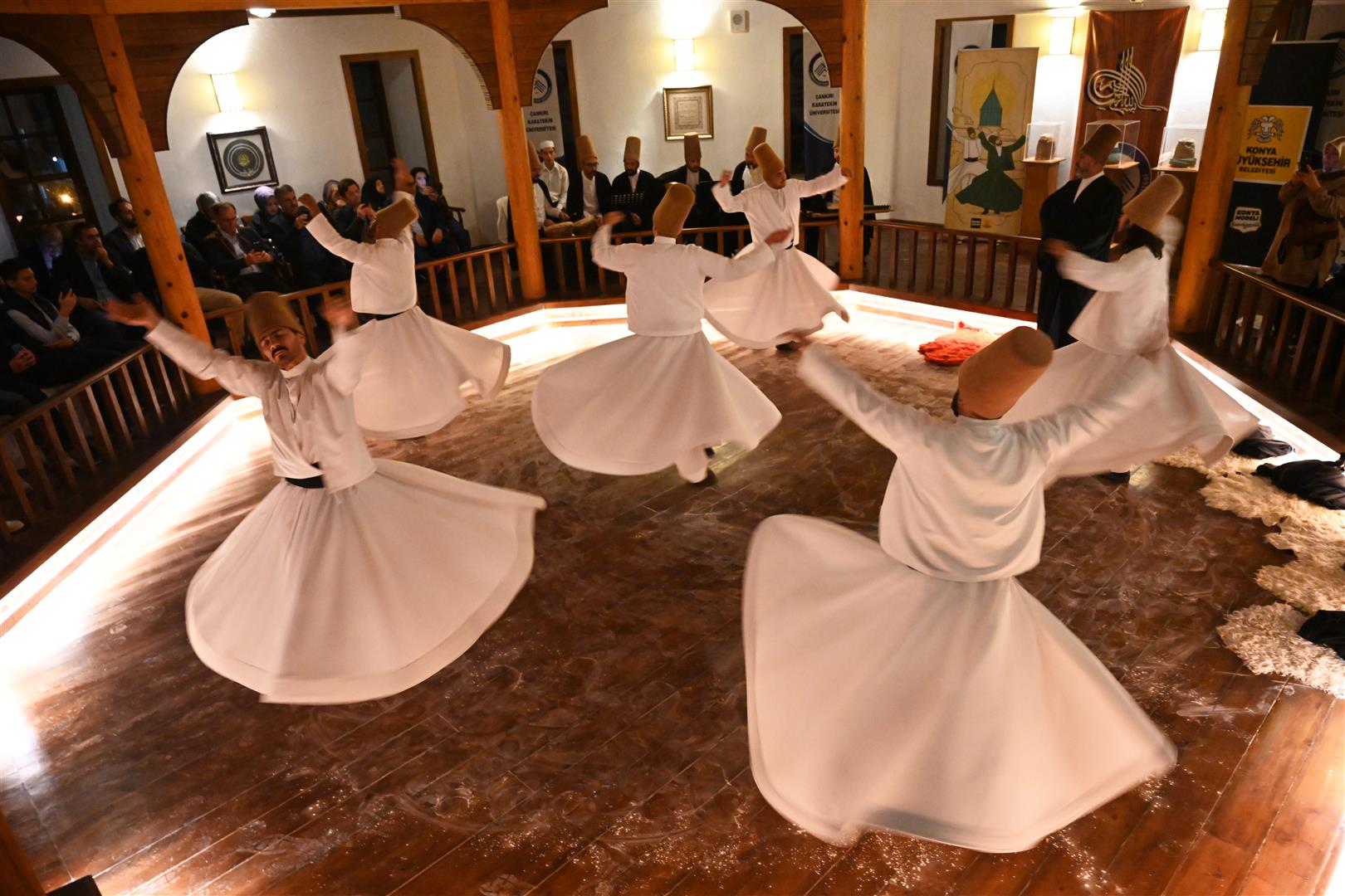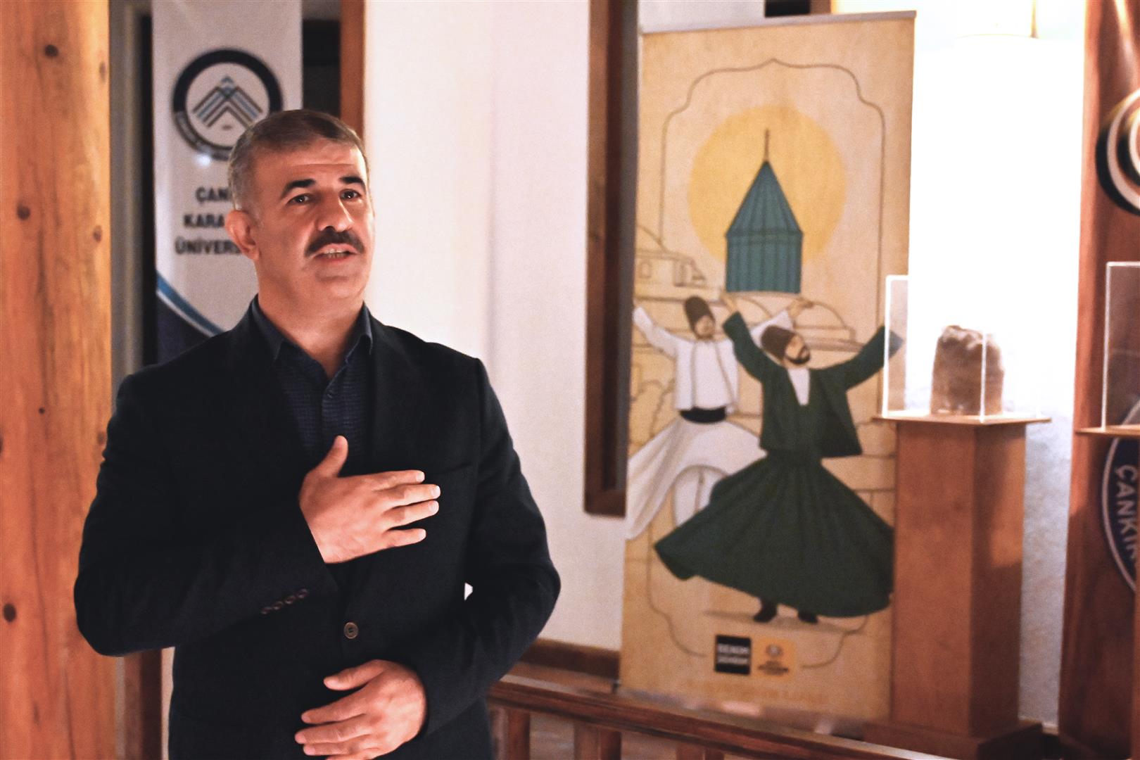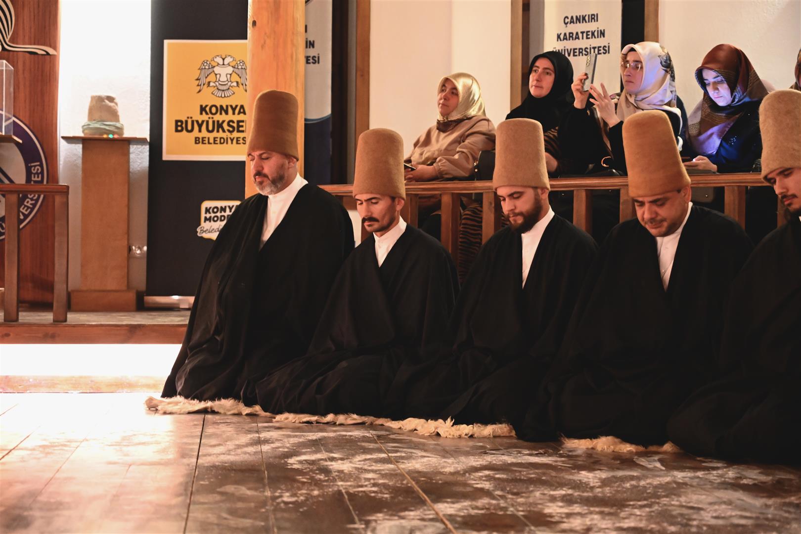 “ Anadolu’da İslam ruhunu mayalayan, ilahi aşkın en yüksek mertebesinden tüm insanlığa Mesnevi gibi müthiş bir miras bırakan sadece ülkemiz için değil tüm dünya için çok önemli manevi şahsiyetlerden biri olan Mevlana Celaleddin-i Rumi’nin vuslatının 750. Yıl dönümünü, Konya Büyükşehir Belediyesi ile gerçekleştirmenin mutluluğunu yaşıyoruz. İnsanlığın büyük krizlere boğuştuğu çağımızda UNESCO tarafından 2023 yılının “Mevlana Yılı” olarak takvime alınması tesadüf değildir. Zira insanlığın bugün en fazla ihtiyaç duyduğu şey birleştirici bir ses olarak sevgi dilidir ve ne mutlu ki bizlere bu ses bizim topraklarımızdan yükselmiştir. Anadolu, küresel ölçekte muhtaç olunan sevgi dilinin sadece yükseldiği değil adeta koroya dönüştüğü mümbit bir coğrafyadır. Yunus’undan Hoca Ahmet Yesevi’sine Ahi Evran’dan Hacı Bektaş-ı Veli’sine değin birçok ses bu koroda yüreklerini ömürlerini ortaya koymuştur. Çok şükür ki bizler ötekisi olmayan bir insanlık tasavvuruna sahip bu yüce gönüllü insanların mirasçılarıyız. Bu mirasın ihyasında Çankırı Karatekin Üniversitesi olarak üzerimize düşen sorumluluğu yerine getirmek için çaba sarf ediyoruz. Göreve geldiğimizde burası Darülhadis olarak, İslam Araştırmaları Merkezi olarak faaliyete başlamıştı. Biz bu Mevlevihane’yi nasıl sürdürebilir bir hale getireceğiz diye düşünürken tam o esnada, bugün ortaklaşa bu etkinliği düzenlediğimiz Konya Büyükşehir Belediyesi yetişti bize. Gerçekleştirdiğimiz bu etkinliğimize ev sahipliği yapan ve halk arasında Taş Mescid olarak da bilinen Darüşşifamızı da bu çabalarımızın neticesinde aslına uygun olarak işlevlendirdik. Bize tarihten emanet edilen bu nadide mekânda Allah’ın ismi yüceltilecek, Allah’ın ismi şerifi kalplere nakşedilecektir inşallah. Buna vesile olan, bunu hatırlatan başta Hazreti Mevlânâ olmak üzere bütün ervâh-ı meşâyıh ruhlarına biz Fatiha okuyoruz burada. Onlara rahmetler diliyoruz. Bugün bizlere bu güzel Sema Ayin-i Şerif’i icra eden ekibimize ve bizlerle aynı hisleri paylaşarak yanımızda olan tüm katılımcılara şükranlarımızı sunuyoruz. Çankırı Karatekin Üniversitesi Rektörü olarak göreve geldiğimizde şunu ifade etmiştik, bize dair ne varsa orada Çankırı Karatekin Üniversitesi var olacak demiştik. Bugün de bu sözümüzü yineliyorum ve inşallah önümüzdeki yıllarda da bizi biz yapan, ortak değerlerimizle bağımızı güçlendiren bu tür etkinliklerde tekrar bir araya gelmeyi diliyorum.” dedi.