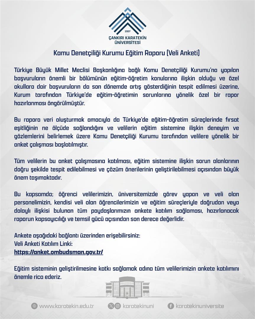 Kamu Denetçiliği Kurumu Eğitim Raporu (Veli Anketi)