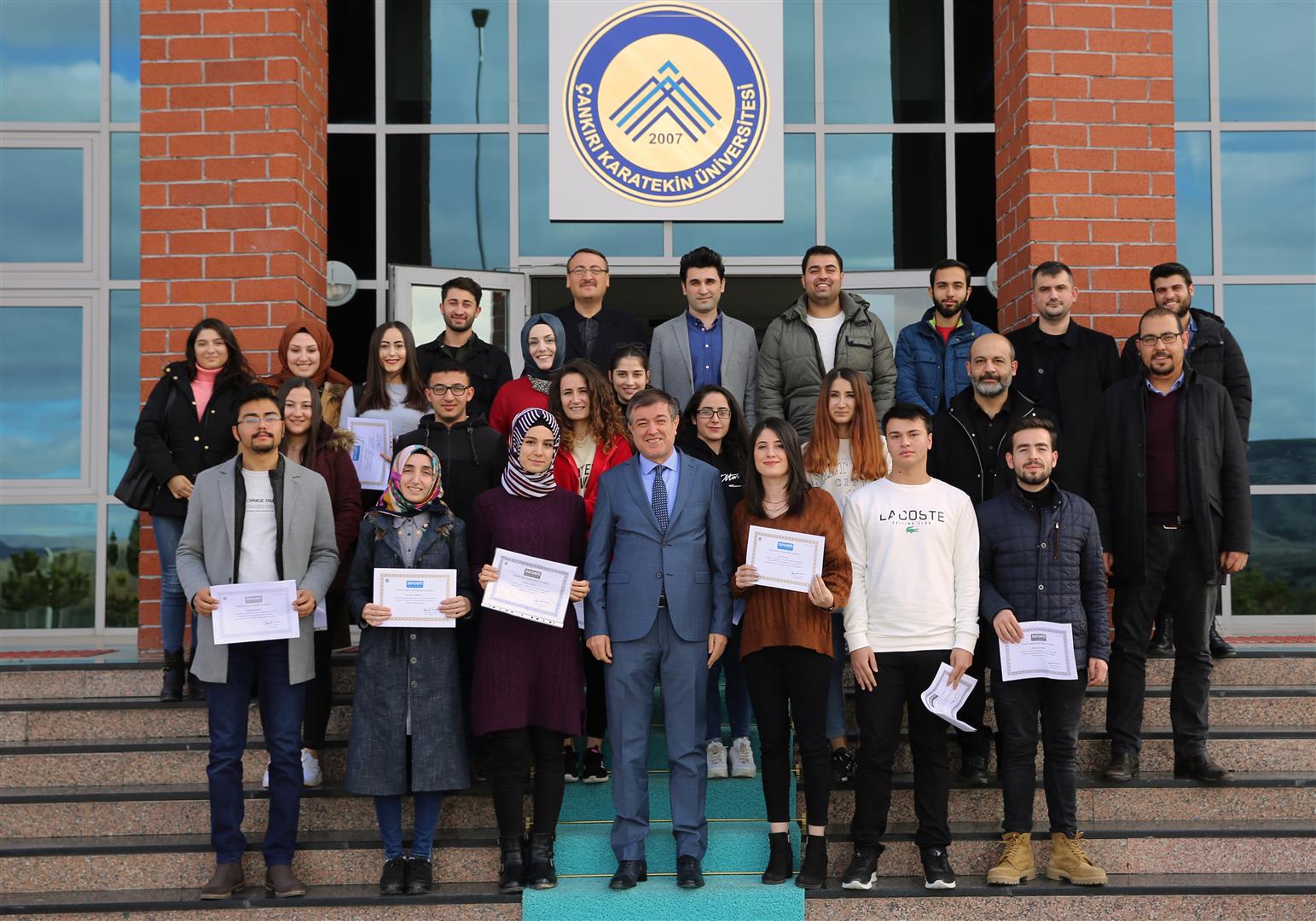 Rektör Prof. Dr. Hasan Ayrancı, Sigortacılık Eğitimi Merkezi tarafından yapılan sınavda başarılı olarak “Teknik Personel Yeterlilik Sertifikası” almaya hak kazanan Bankacılık ve Finans Bölümü öğrencilerini makamında ağırladı.