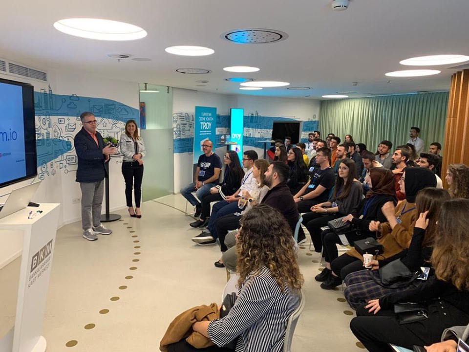 Katılımcıların ikinci durağı Bankalararası Kart Merkezi oldu. Burada BKM Ürün Yönetimi Direktörü Berrak Edin Yılmaz tarafından karşılanan katılımcılara, BKM İş Geliştirme Direktörü Özge Çelik tarafından "Fintech: Finans Dünyası Yeniden Şekilleniyor" başlıklı sunum gerçekleştirildi. Öğrencilere iş yapış modellerindeki gelişimler, yeni teknolojilerin entegrasyonu ve dijital dönüşüm ile ilgili bilgiler aktarıldı. Sunum sonrasında Bankalararası Kart Merkezi Genel Müdürü Dr. Soner Canko katılımcılara hoş geldiniz dileklerini ileterek "Çankırı Karatekin Üniversitesi bizler için çok kıymetli. Rektör Hocamız Prof. Dr. Hasan Ayrancı’nın yeri bizler için çok ayrı. Geçtiğimiz yıl TROY ile ilgili bir sunum için önce Genel Müdür Yardımcımız Cenk Temiz Bey Üniversiteyi ziyaret etti. Mart ayında da ben Uluyazı Kampüsü’ne geldim. Medya ve Girişimcilik Topluluğu`nun sayesinde fahri Çankırılı oldum. Hepinize tekrardan hoş geldiniz diyor, destek verebileceğimiz her konuda da kapımızın sizlere her zaman açık olduğunu bilmenizi istiyorum." şeklinde konuştu.