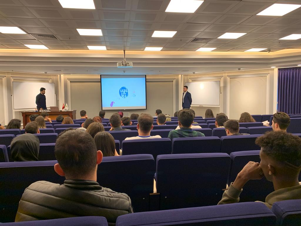 Kuveyt Türk Katılım Bankası A.Ş. Genel Müdürlüğü`ne yapılan son ziyarette ise İnsan Kaynakları Uzmanları Emre Kaya ve Enes Sevgilioğlu tarafından gerçekleştirilen sunumda, Kuveyt Türk`ün 3. ve 4. sınıf öğrencilerine ve yeni mezunlara yönelik programları olan Tekno MT, Bankada Kampüs, Tekno Kampüs ve KT Kâşif hakkında bilgi verildi. Sunumun ardından soruları cevaplayan Emre Kaya: "Mülakat süreçlerimizi gençleri yormayacak şekilde güncelledik. Birçok mülakatımızı görüntülü konuşma uygulamaları üzerinden gerçekleştiriyoruz. Bu alt yapıya sahip olmayan adaylarımızı kendilerine en yakın şubemizde ağırlayarak görüntülü mülakata alıyoruz. Bu süreçle birlikte öğrenci/yeni mezun adaylarımızın İstanbul`a gelme konusunda bir zorluk çekmemesini sağlıyoruz." dedi. İşe alım süreci ile ilgili gelen bir soruya cevap veren Kaya: "Biz kurum olarak açık pozisyonlarımızda özellikle yeni mezun olan deneyimsiz genç arkadaşlarımıza yer veriyoruz. Hatta şöyle söyleyelim, üst düzey bir yöneticimiz kurumdan ayrılırsa bizler yeni bir yönetici arayışına girmiyoruz. Bir alt pozisyondaki arkadaşımızı onun yerine istihdam ediyoruz ve bu zincir en alta kadar devam ediyor. Dolayısıyla üst pozisyonlardaki bir açık nedeniyle banko görevlisi alımına dahi çıkabiliyoruz." dedi.