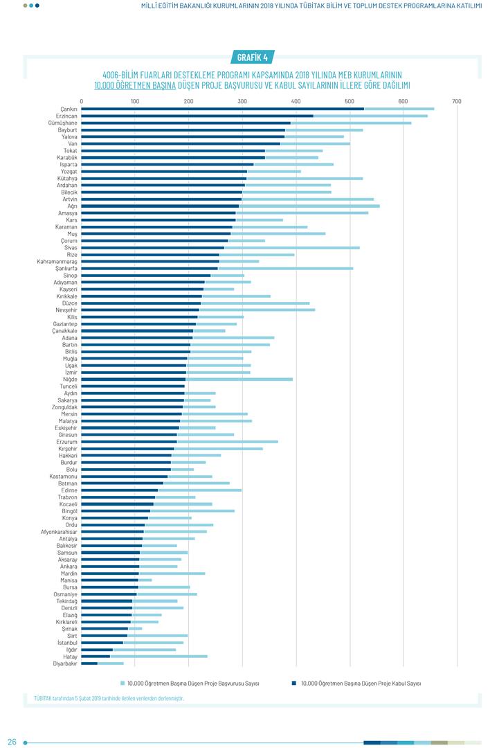 Türkiye Bilimsel ve Teknolojik Araştırma Kurumu (TÜBİTAK) tarafından, il temsilciliğini ÇAKÜ Dr. Öğr. Üyesi İlkay Çorak Öcal’ın yürüttüğü “4006-Bilim Fuarları Destekleme Programı” kapsamında, 2018 yılında Milli Eğitim Bakanlığı kurumları içerisinde on bin öğretmen başına düşen proje başvurusu ve kabul sayısı il sıralamasında Çankırı, Türkiye birincisi oldu.