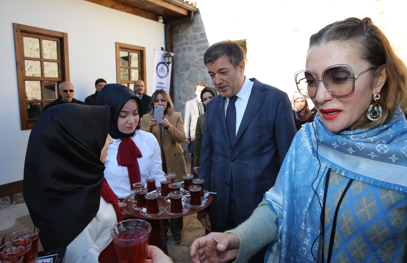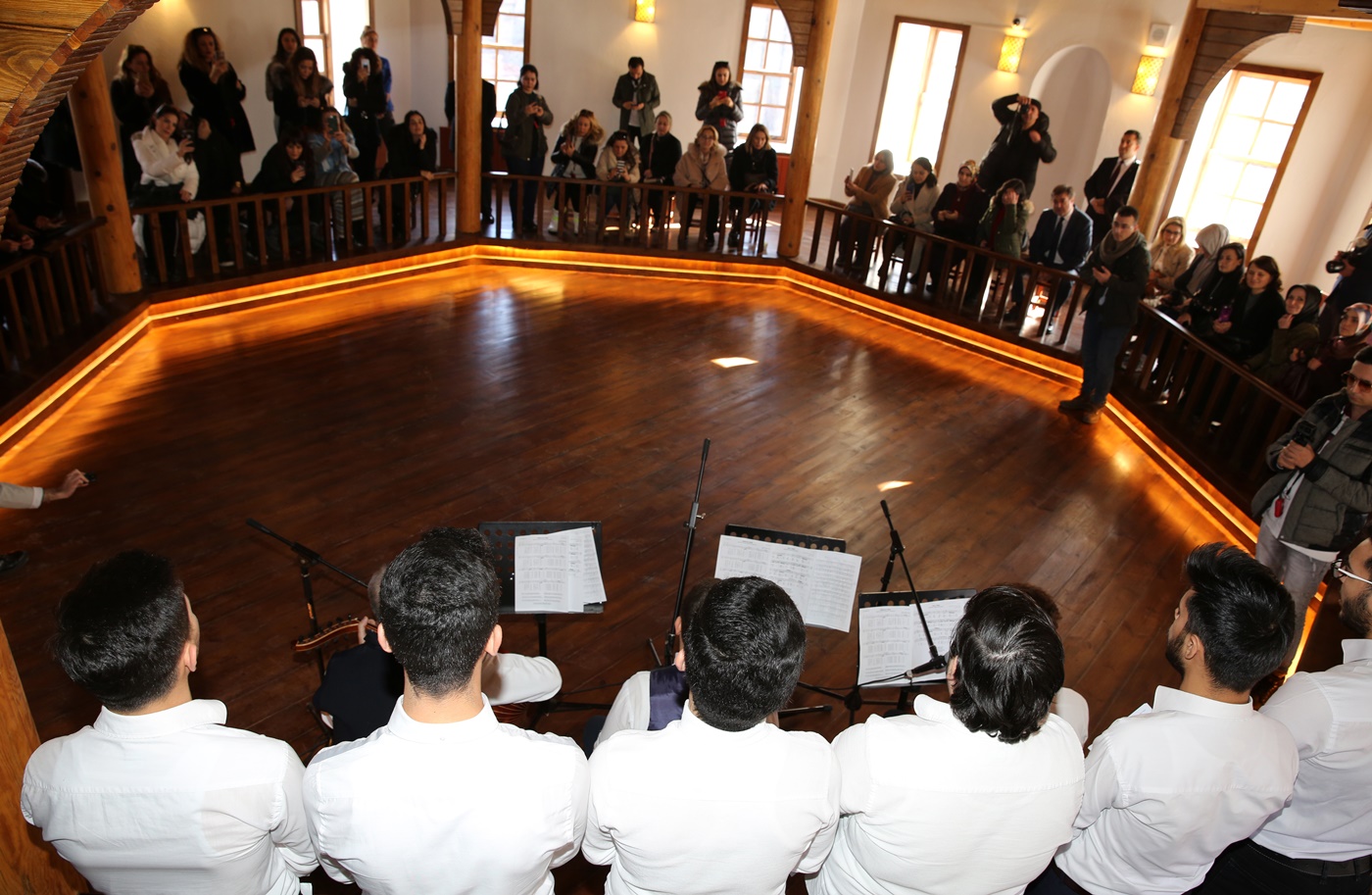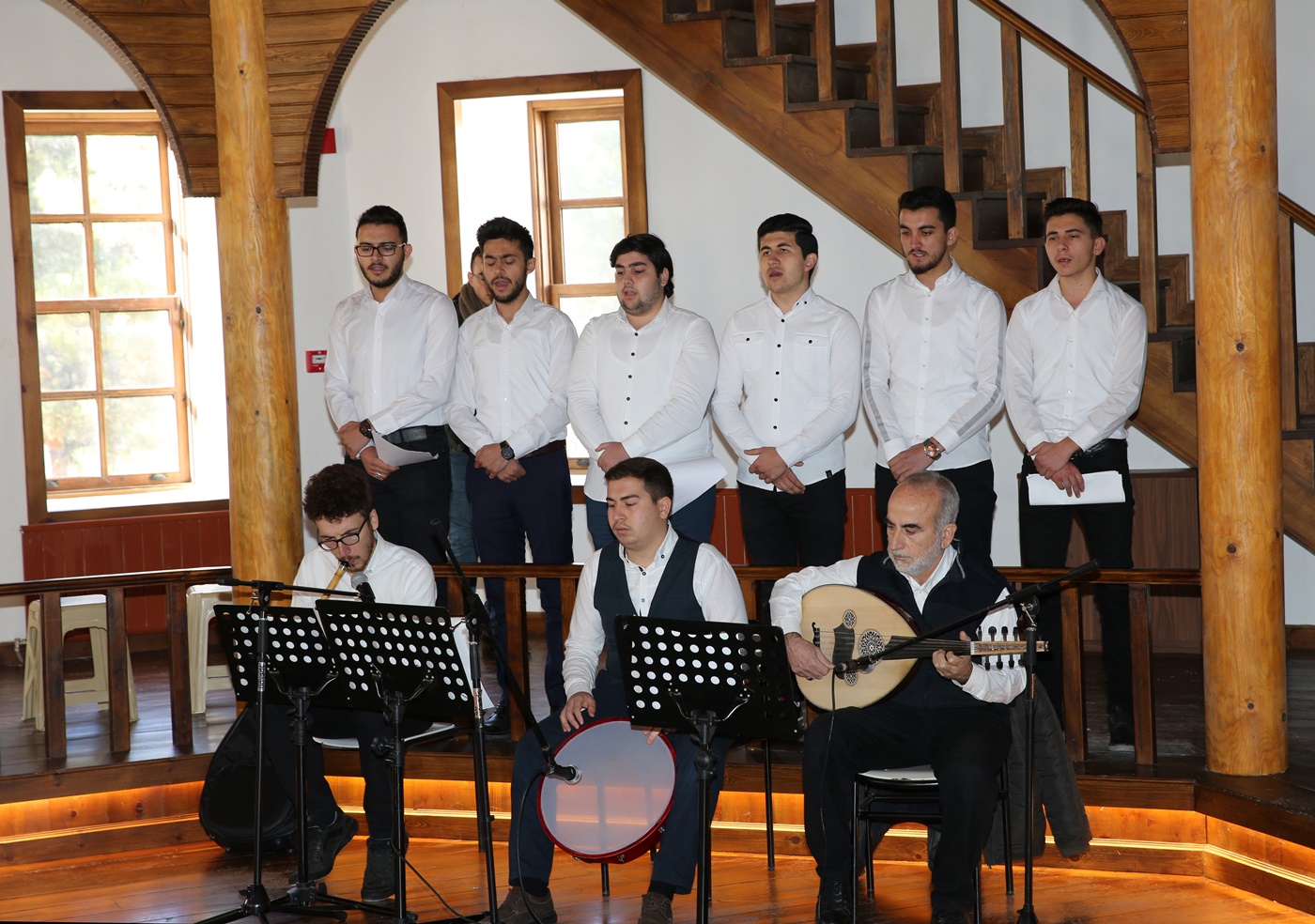 Gezide misafirlere Osmanlı şurubu ikramı yapılırken, aslına uygun olarak inşa edilen Mevlevihane’de de İslami İlimler Fakültesi öğrencileri tarafından kısa bir ilahi dinletisi icra edildi.