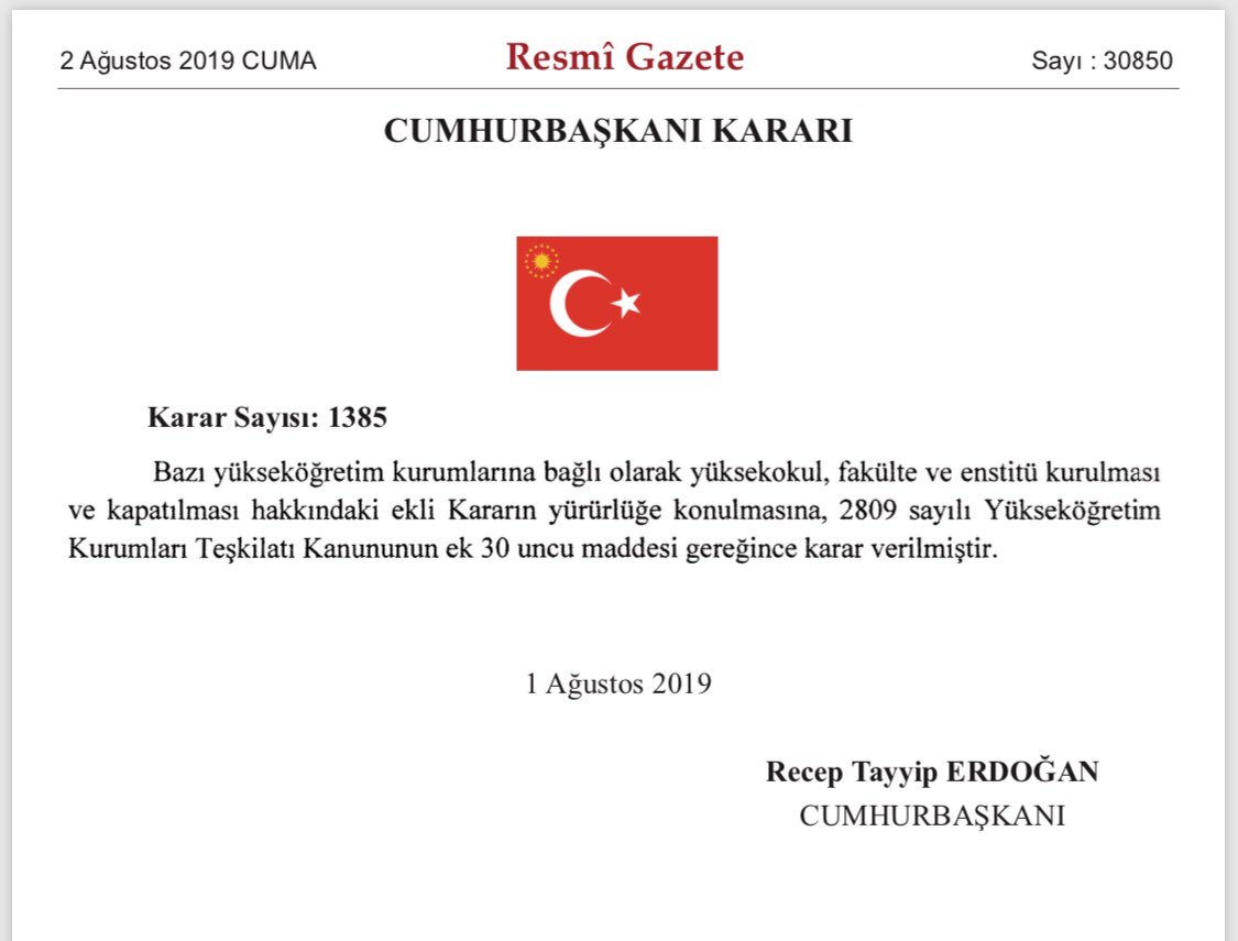 02/08/2019 Tarihli ve 30850 Sayılı Resmî Gazete`nin 1385 Sayılı Kararına ulaşmak için TIKLAYINIZ