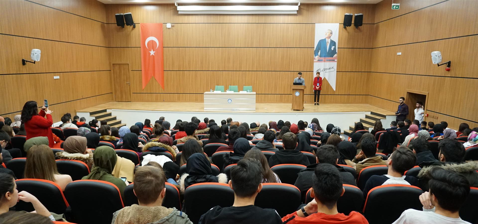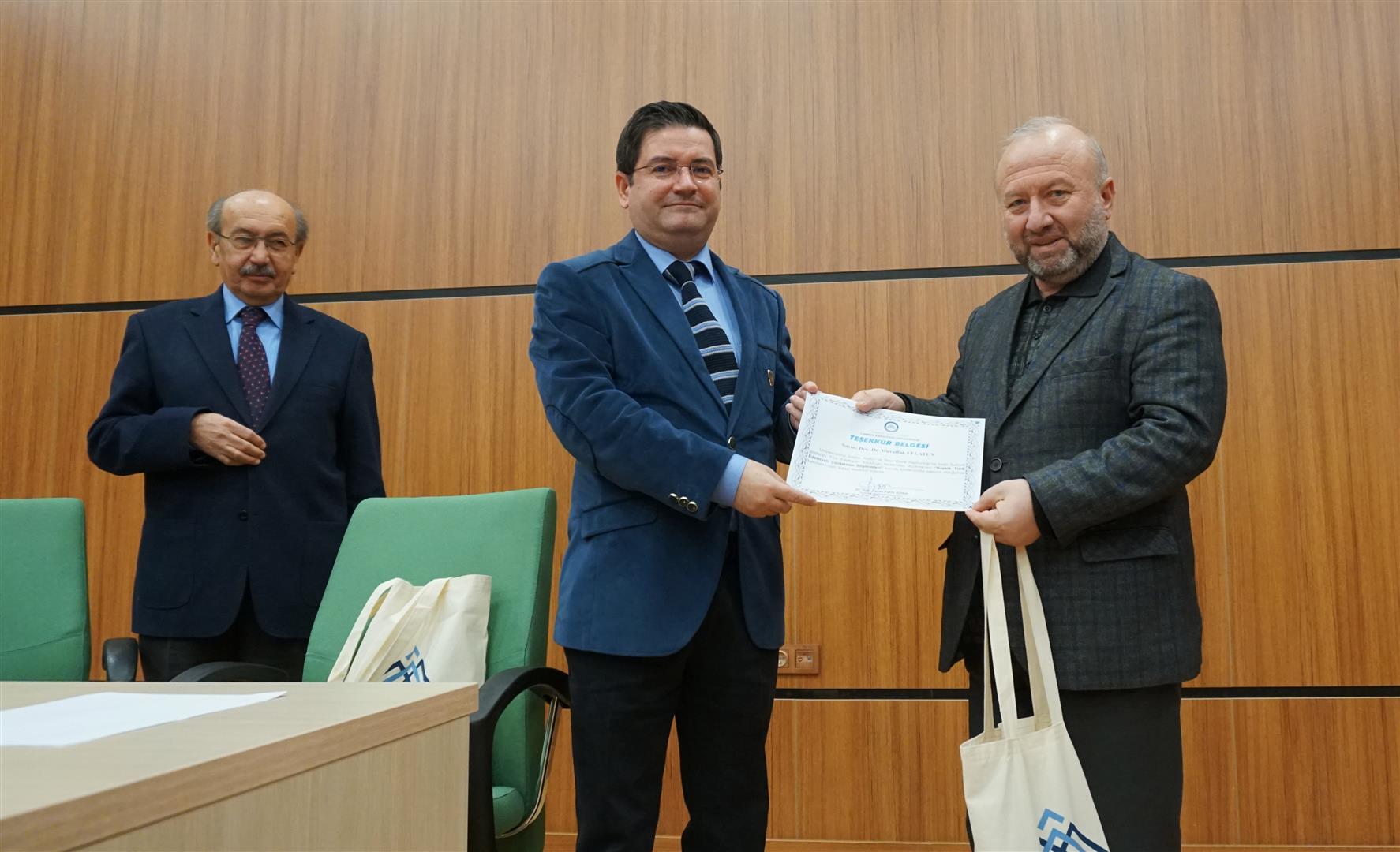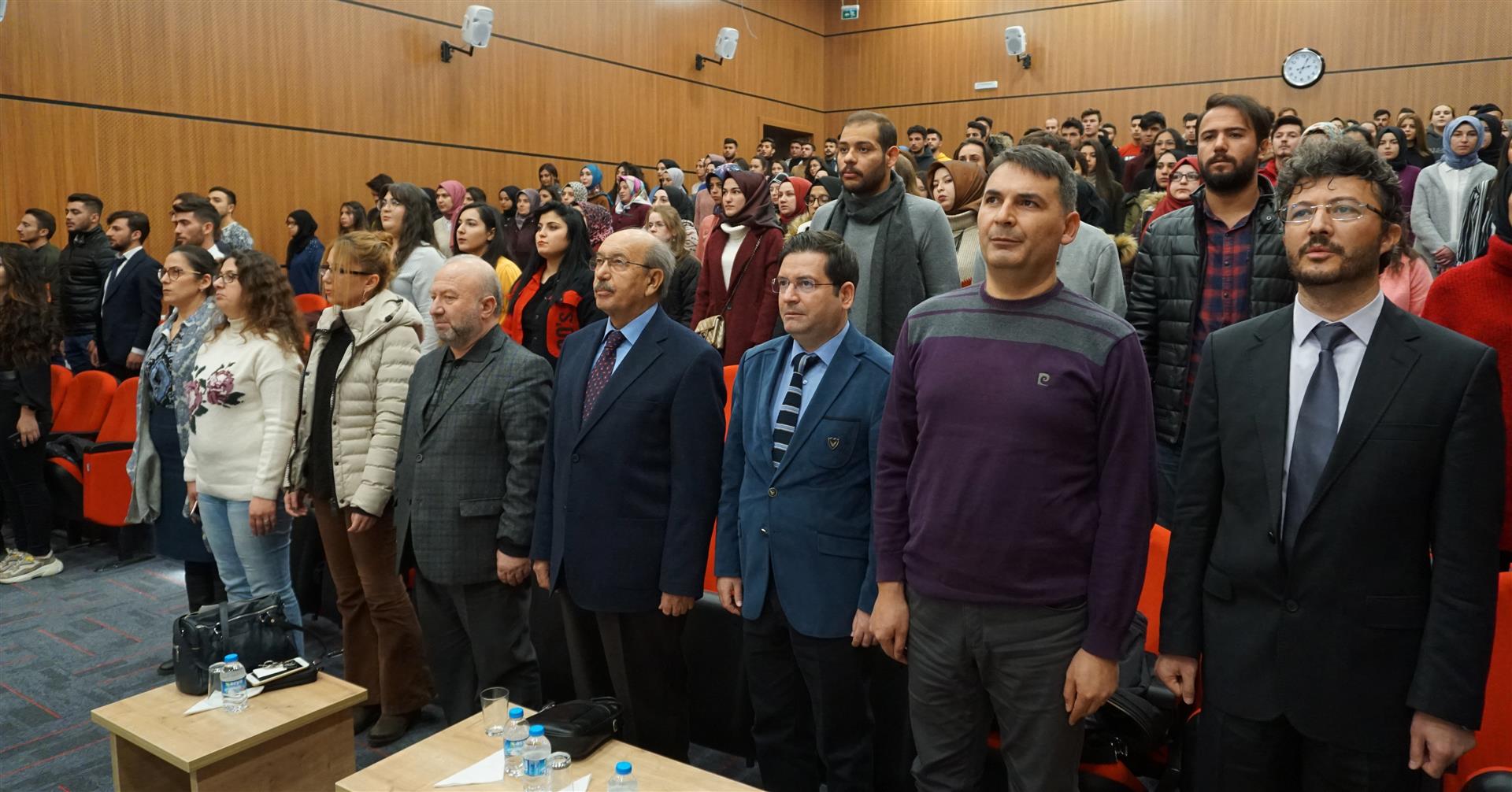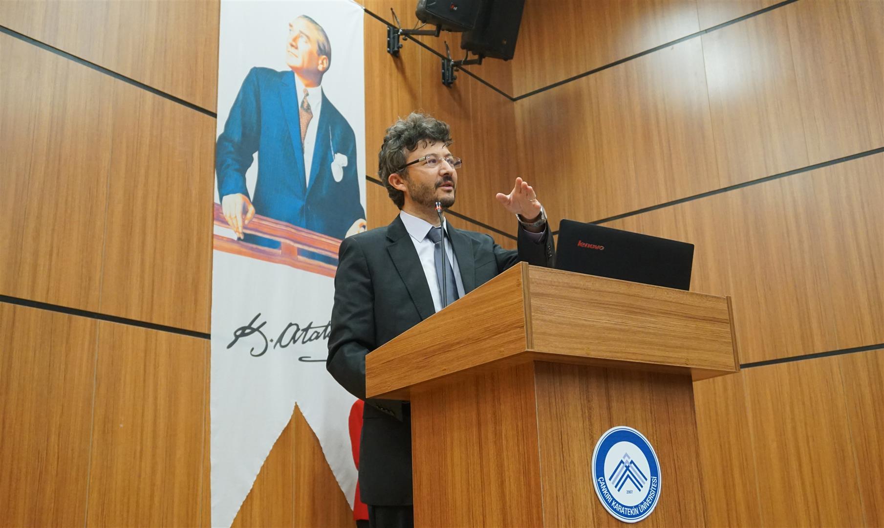 Çankırı Karatekin Üniversitesi Türk Edebiyatı Topluluğu tarafından organize edilen, Prof. Dr. Ahmet Mermer, Doç. Dr. Muvaffak Eflatun ve Dr. Öğr. Üyesi Fatih Sona’nın konuşmacı olduğu panel, İslami İlimler Konferans Salonunda gerçekleştirildi. Saygı duruşunda bulunulması ve İstiklal Marşının okunması ile başlayan programın açılış konuşmasını gerçekleştiren Türk Edebiyatı Topluluğu Başkanı Beyazıt Çağrı Yurdagül, bir buçuk ayda kurulan bir topluluk olmalarına rağmen hızlı bir şekilde programlar düzenlediklerini belirterek katılımcılara teşriflerinden ötürü teşekkür etti. Prof. Dr. Ahmet Mermer’in biyografisinin okunmasının ardından konuşan Dr. Öğr. Üyesi Fatih Sona, Türk Dili Edebiyatı Bölümü ve Topluluğu olarak amaçlarının bir kültür oluşturmak olduğunu söyledi. Ankara’ya en yakın şehirlerden birinin Çankırı olduğunu ifade eden Sona, Klasik Türk Edebiyatı ile ilgili genel bilgiler verdi. Sona’dan sonra konuşmasına başlayan Prof. Dr. Ahmet Mermer, 2 yıllık emeklilikten sonra öğrencilerle bir araya geldiği için oldukça mutluluk duyduğunu ifade etti. İnsanın yaratılış gereği, iyiyi ve doğruyu arayan bir varlık olduğunu söyleyen Mermer, Cemil Meriç’in "Muhteşem bir maziyi daha muhteşem bir istikbale bağlayacak bir köprü olmak isterdim." sözünü örnek vererek sevginin bağlayıcılığının altını çizdi. Türk Dili ve Edebiyatı`nın da bir köprü olduğunu söyleyen Mermer, konuşmasında Mehmet Akif Ersoy ve Yahya Kemal Beyatlı’nın şiir ve hayata bakışından örnekler verdi. Doç. Dr. Muvaffak Eflatun, Klasik Türk Edebiyatı`nın, Batı Medeniyeti ve İslam Medeniyeti kavramları çerçevesinde değerlendirmesi gerektiğini söyledi. Batı Medeniyetinin sanatta yansıtma kuramından devam ettiğini ve bu kuram üzerinden beslendiğini ifade eden Eflatun, İslam Medeniyetinde ortaya çıkan edebî anlayışın soyutlama kavramı üzerine oturduğunu sözlerine ekledi. Program sonunda katılımcılara sertifika ve hediye takdimi gerçekleştirildi.
