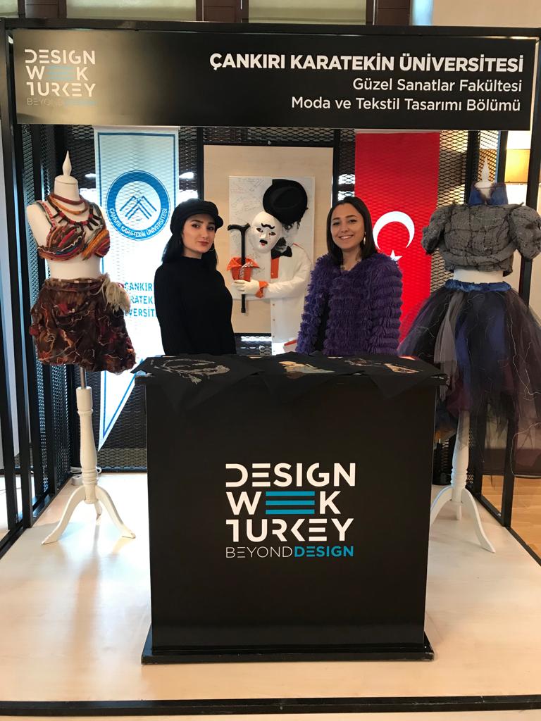 Çankırı Karatekin Üniversitesi Moda ve Tekstil Tasarım Bölümü, T.C. Ticaret Bakanlığı koordinasyonu ve Türkiye İhracatçılar Meclisi (TİM) organizasyonu ile 14-17 Kasım 2019 tarihleri arasında, bu yıl dördüncüsü Haliç Kongre Merkezi’nde gerçekleşen Design Week Turkey’e katılım sağladı. Organizasyonda stant ve tematik sergi alanı ile yer alan Moda ve Tekstil Tasarımı Bölümü’nden Öğr. Gör. Zeynep Kahraman ile öğrencilerimiz Deniz Altunbulak ve Hasret Ceren Sağır tarafından üniversite ve bölüm tanıtımı yapıldı.