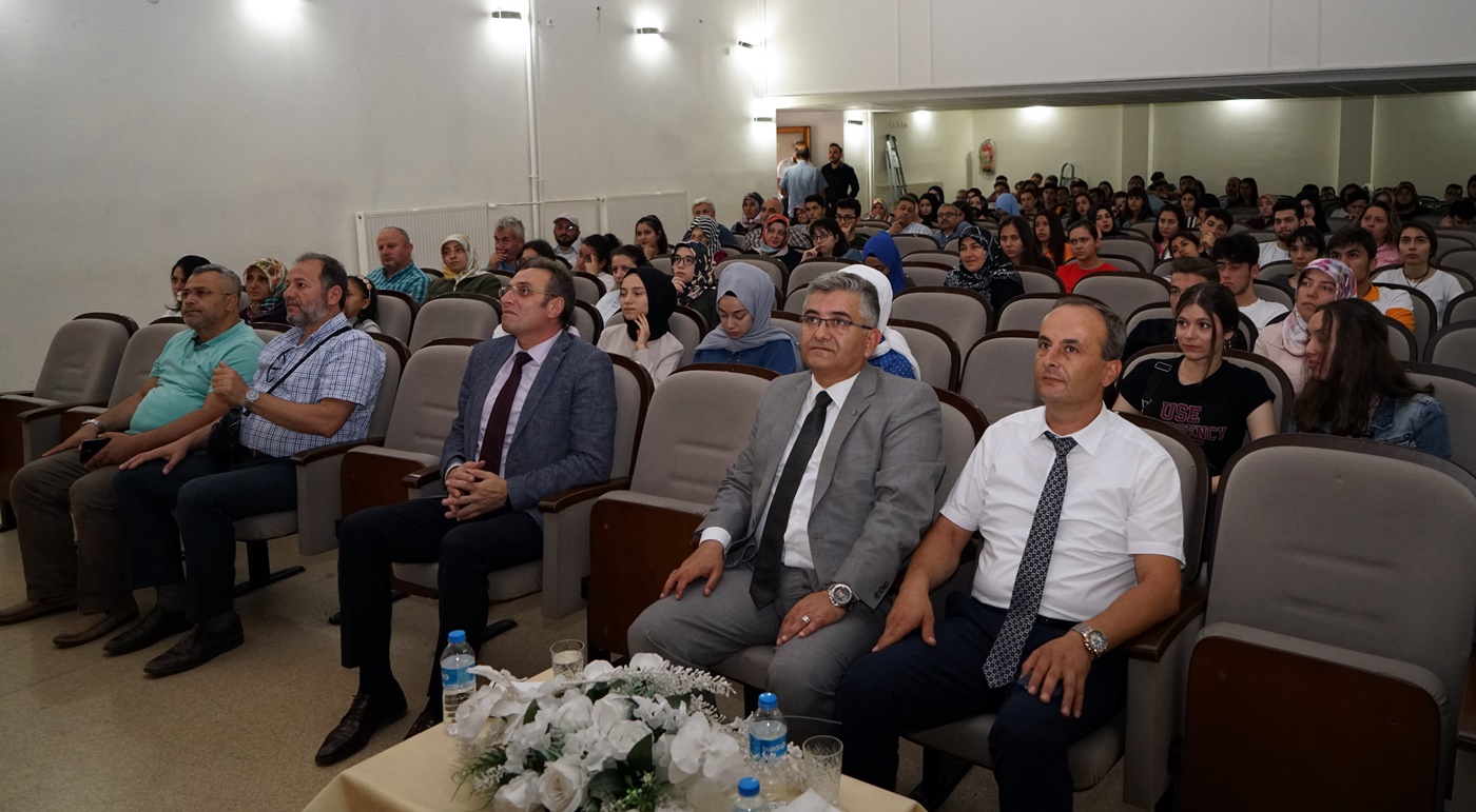 Son olarak kürsüye gelen İl Milli Eğitim Müdürü Muammer Öztürk, kendisi de bir sınav olan hayatın, öğrencilere tüm yaşamlarını etkileyen bir tercih yapmak durumunda bıraktığını söyleyerek “Şüphesiz ki yapacağınız tercih çok önemli ama hayatın ya da bir şeylerin sonu değil. Sınavda başarılı olmak çok önemli, sizler bunu başardınız ve şimdi sıra doğru tercih yapma zamanında. Bunun için Rehberlik Araştırma Merkezimiz sizlere yardımcı olabilmek için tüm hazırlılarını yaptı ve sizleri bekliyor. Sizlere bir eğitimci olarak şunu söyleyebilirim ki mutlaka devlet kadrolarında iş sahibi olacağım diye sevmediğiniz bir alana yönlenmeyin. Hepinize başarılı ve doğru tercih yapacağınız bir dönem ve yeni öğrenim hayatınızda başarılar diliyorum.” dedi.