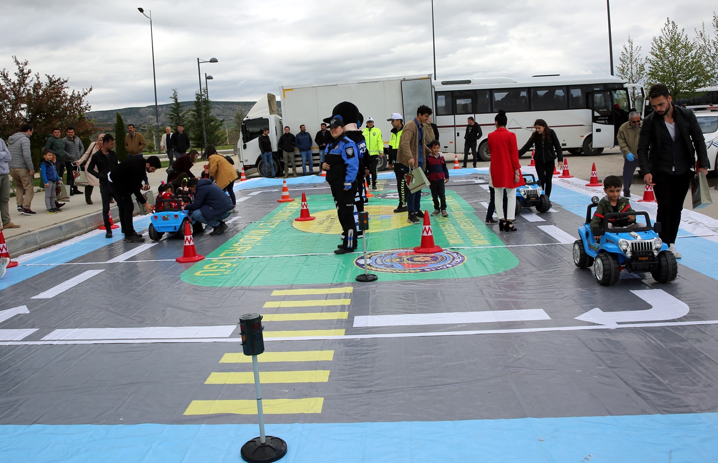 Vali Yardımcısı Zeki Karaca, ÇAKÜ Rektörü Prof. Dr. Hasan Ayrancı, İl Emniyet Müdürü Saadettin Aksoy, İl Jandarma Alay Komutanı Albay Hıdır Ayçiçek, akademisyenler, üniversite öğrencileri ve anasınıfı öğrencilerinin gezdiği sergi ve eğitimde katılımcılara trafik polislerinin kullandığı araçlar tanıtıldı.