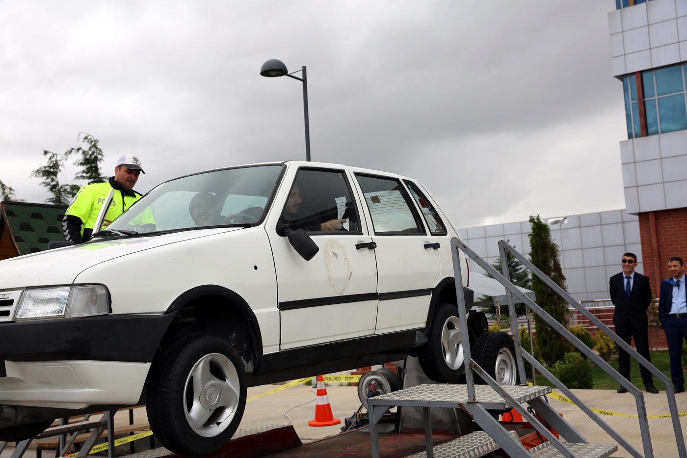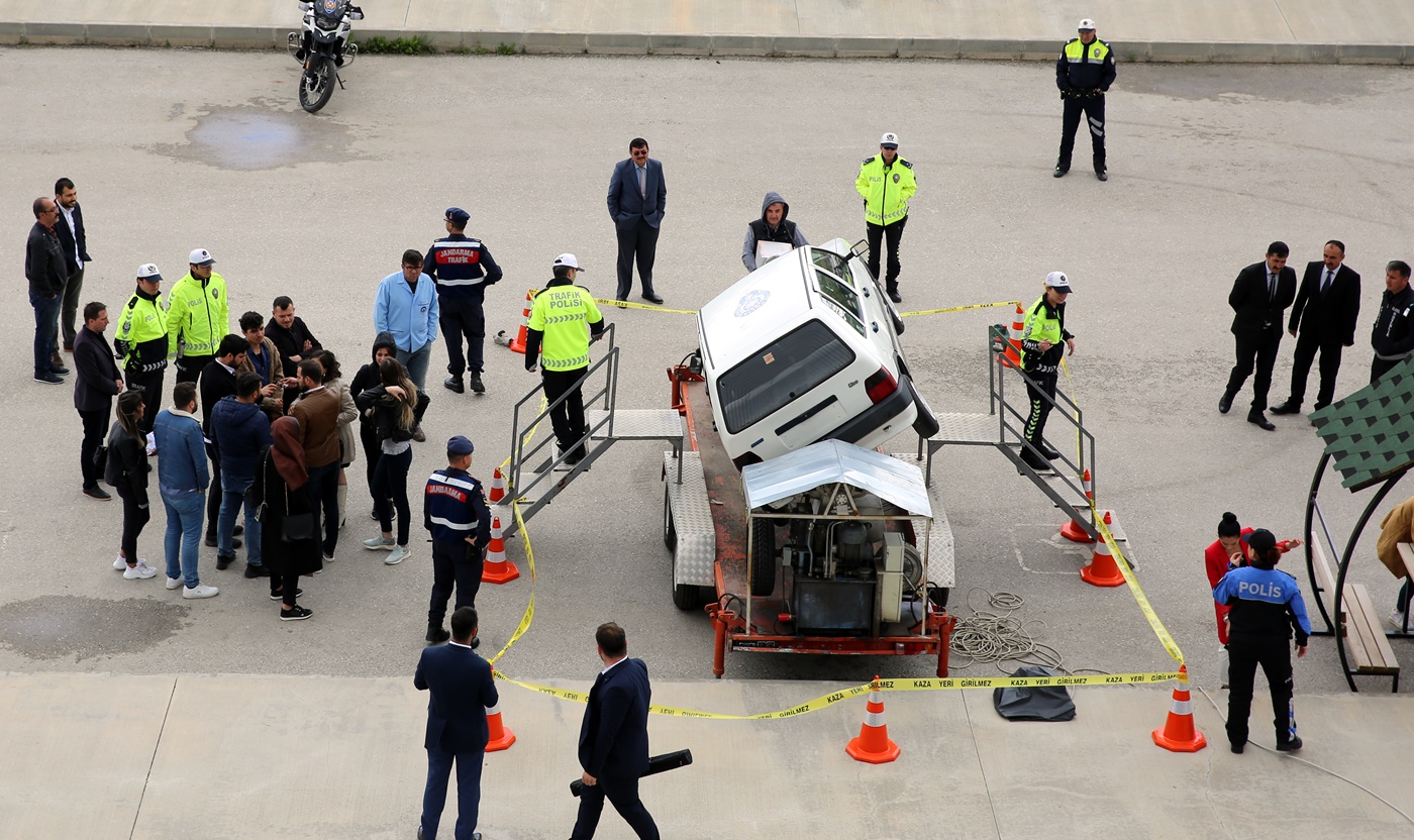 Ayrıca İl Emniyet Müdürlüğü tarafından kurulan simülatör aracı ile emniyet kemerinin kaza anında insan hayatını nasıl kurtardığı uygulamalı olarak anlatılarak önemine vurgu yapıldı.