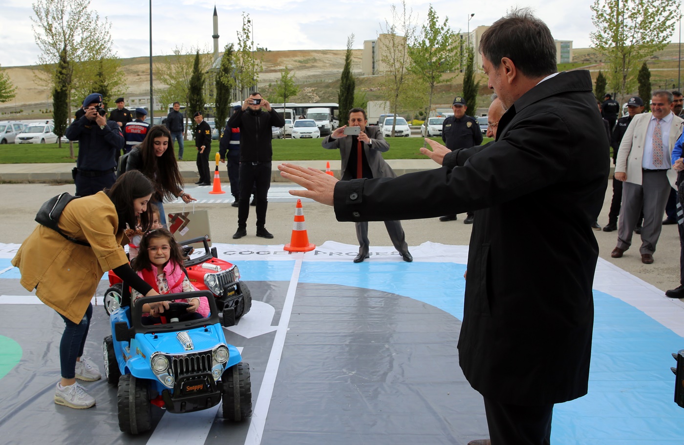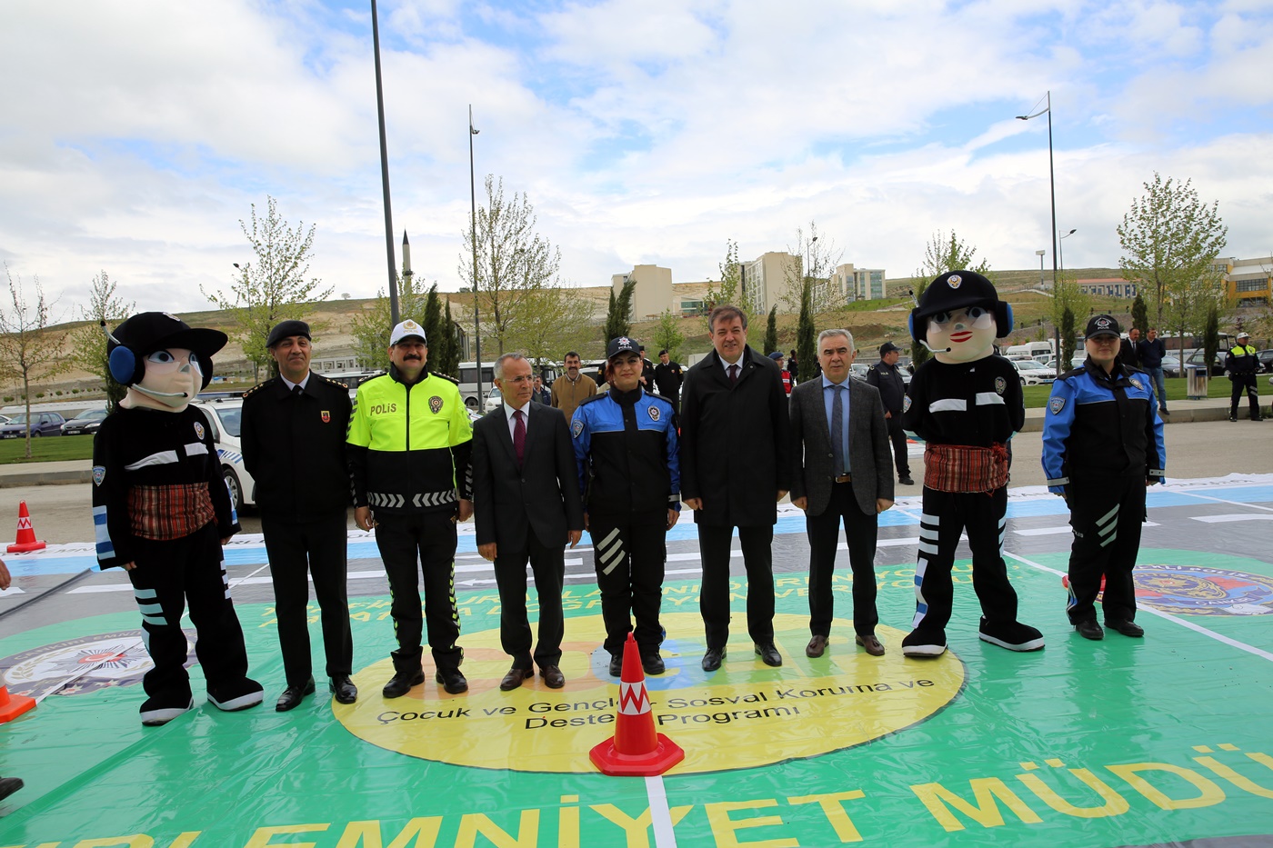 Rektör Ayrancı ve beraberindeki heyet kurulan platformda Trafik şube müdürlüğü ekiplerince uygulamalı trafik eğitimi anlatılan anasınıfı öğrencileri ile sohbet ederek fotoğraf çektirdiler.