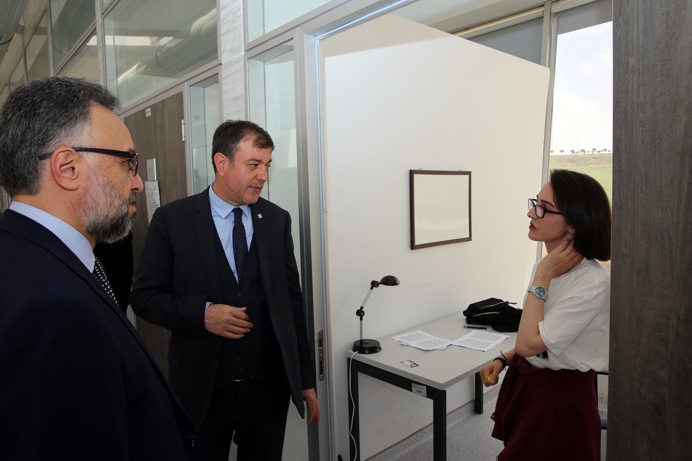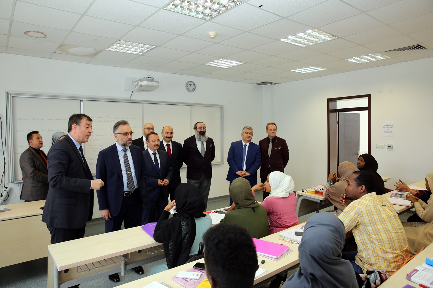 Daha sonra Rektör Ayrancı ve beraberindeki heyet ile birlikte Uluyazı Kampüsü içerisinde incelemelerde bulunan YÖK Başkan Vekili Prof. Dr. M.İ. Safa Kapıcıoğlu yabancı uyruklu öğrencilerin Türkçe eğitim dersine katılarak öğrencilerle sohbet etti ve öğrencilerin eğitim düzeyinden mutlu olduğunu ifade etti.