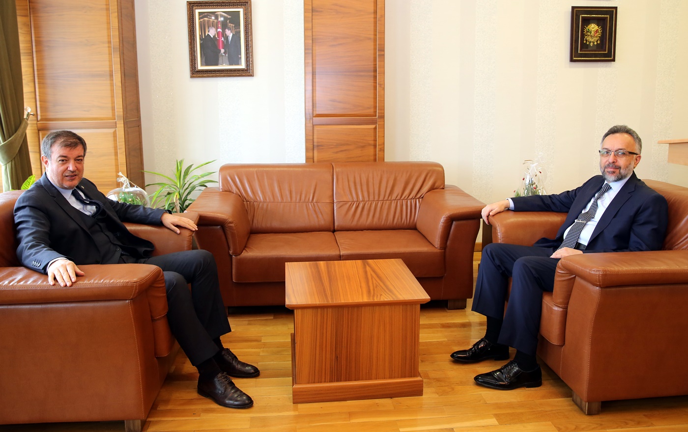 Çankırı Karatekin Üniversitesi Rektörü Prof. Dr. Hasan Ayrancı tarafından karşılanan Kapıcıoğlu ilk olarak Rektör Ayrancı’yı makamında ziyaret etti.