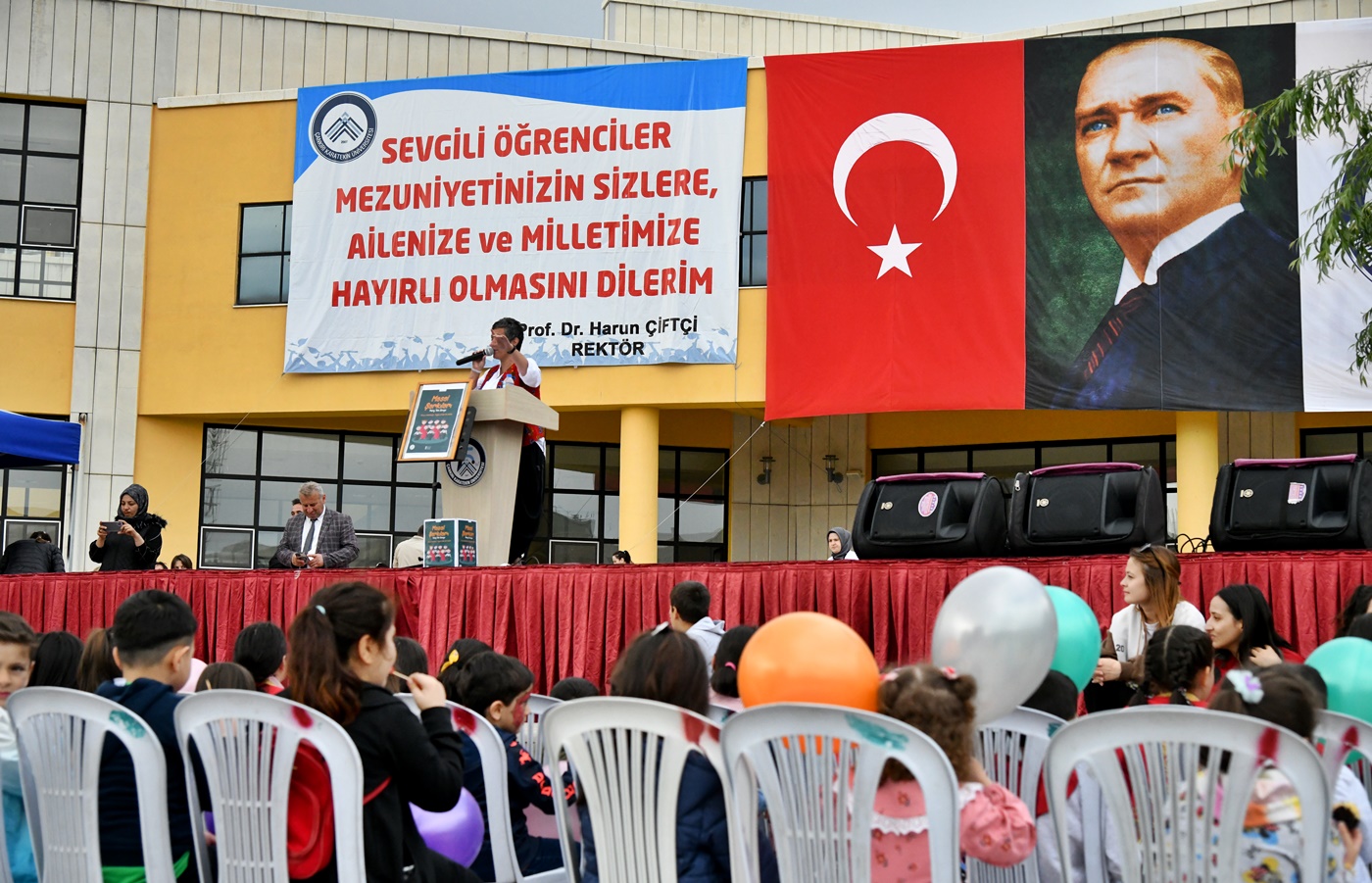 Üniversite yönetimi olarak “insan”ı odaklarına aldıklarını, insanın olduğu her ortam ve etkinlik için tüm imkanlarını seferber ettiklerini vurgulayan Rektör Çiftçi, “Tabi ki her şeyimiz, geleceğimiz olan çocuklarımız söz konusu olunca yaptığımız etkinliğin, harcadığımız enerjinin hazzı da keyfi de bir başka oluyor. Onları, ruhen, zihnen, bedenen ne kadar geliştirirsek geleceğimizi de o kadar garanti altına almış oluruz. Çocukların neşesinin, cıvıltısının yankılandığı bir dünya her zaman daha güzel olur. Ne mutlu bize ki, bu neşeye cıvıltıya, mutluluğa katkı sağlayıp ortak oluyoruz. Yaptığımız akademik dokunuşları sevgi, samimiyet ve huzur ile yaptığımızda ortaya güzel şeylerin çıkacağı muhakkaktır” diye konuştu.
