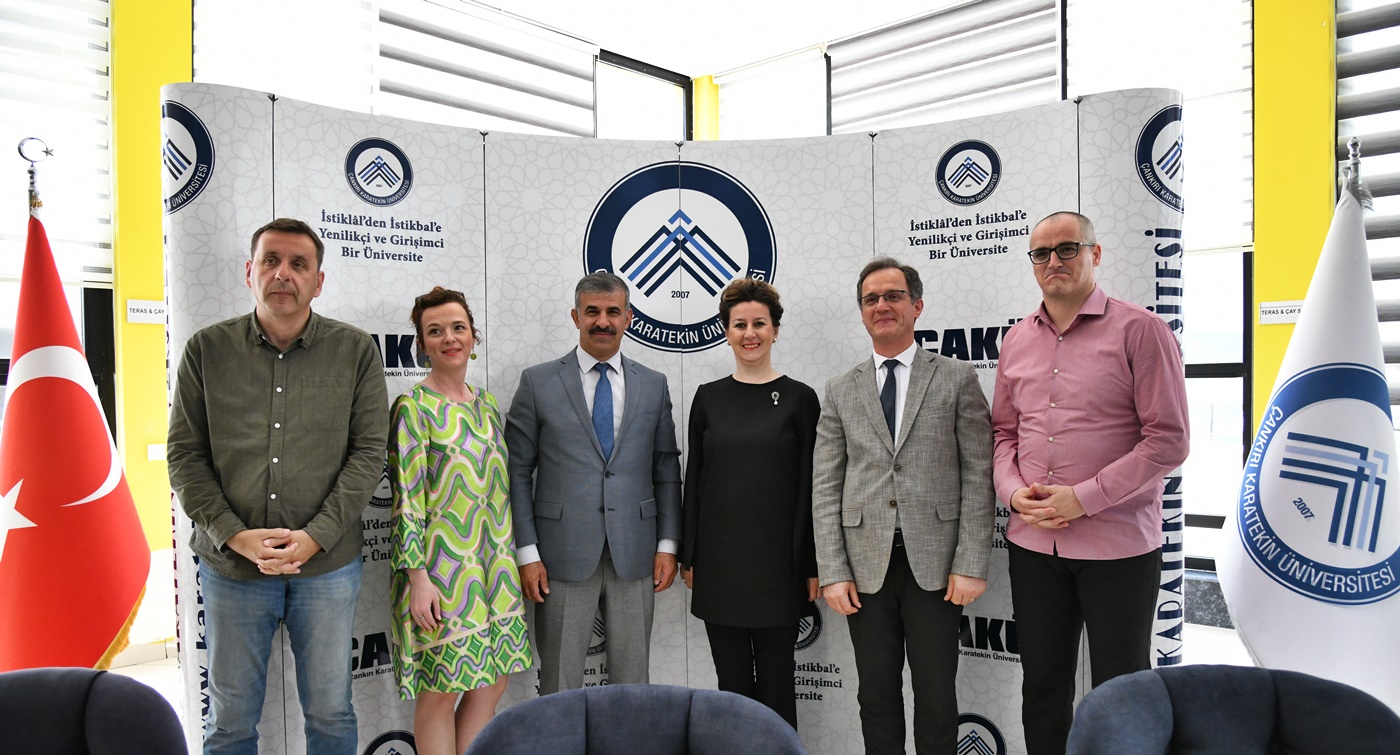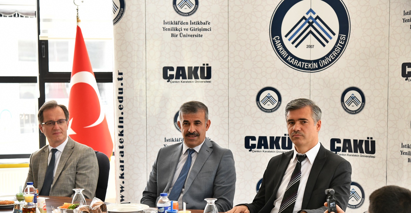ÇANKIRI Karatekin Üniversitesi (ÇAKÜ) Uluslararası İlişkiler Ofisi’nin Erasmus+ KA107 projesi kapsamında, üniversitemizde ders verme ve eğitim alma faaliyetleri gerçekleştirmek üzere farklı ülkelerden ÇAKÜ’ye gelen 20 akademik personel, Rektörümüz Prof. Dr. Harun Çiftçi’yle öğle yemeğinde bir araya geldi. Rektör Yardımcısı Prof. Dr. Hüseyin Odabaş’ın da yer aldığı yemekte katılımcılar, üniversitemizle karşılıklı iş birliğini geliştirmek için önerilerini ve ziyaretlerine dair görüşlerini paylaştılar. Görüşme, hediye takdimi ve fotoğraf çekimi ile sonlandı.