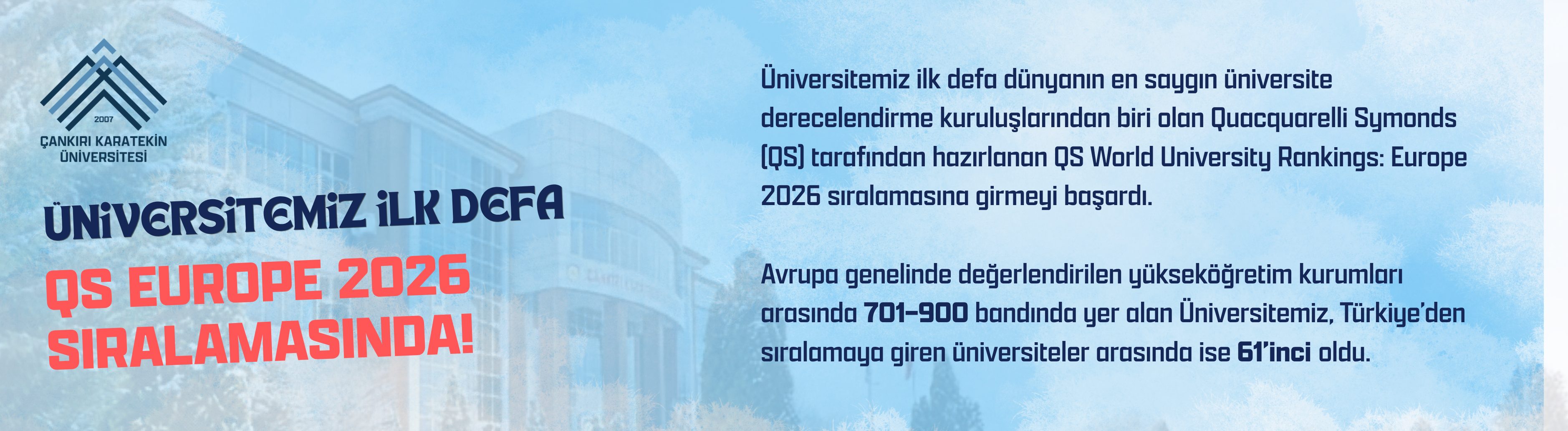 Hem kent hem de kampüs üniversitesi olma niteliği taşıyan Çankırı Karatekin Üniversitesi, öğrencilerinin akademik ve entelektüel gelişiminin yanında, sağladığı kültür, sanat ve spor olanakları ile sosyal gelişimini önemseyerek “yaşayan kampüs” anlayışını benimsemektedir. Yaşayan Kampüs ile öğrenciler akademik ve sosyal bakımdan her türlü ihtiyaçlarına istedikleri zaman erişebildikleri donanımlı bir kampüste eğitim görmektedir.