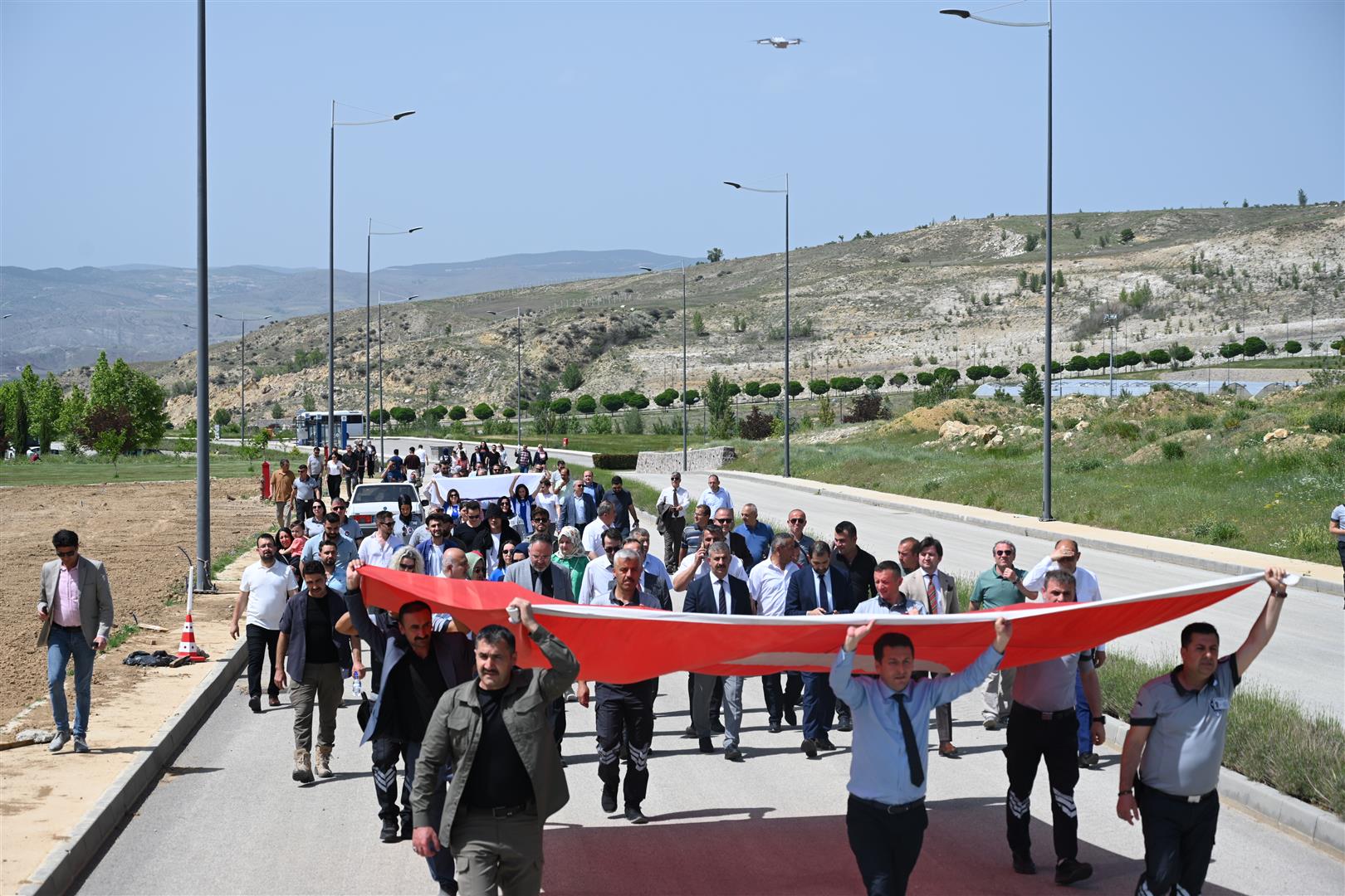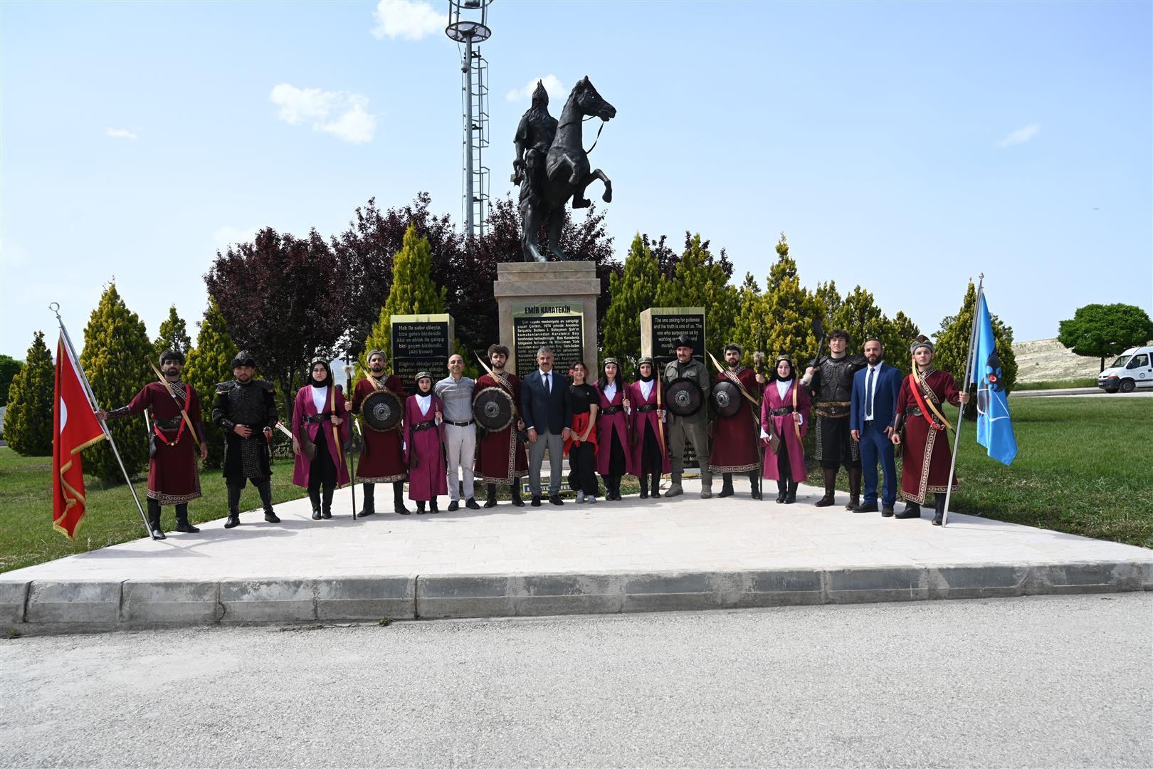 Yürüyüşe katılan ÇAKÜ mensuplarına Emir Karatekin Anıtı önünde hitap eden Rektörümüz Prof. Dr. Harun Çiftçi; “Bu toprakları bize vatan olarak emanet edenlere müteşekkiriz. Onları rahmet ve minnetle anıyoruz. Tarihine sahip çıkan bir milletin evlatları olarak biz de bu emaneti en güzel yerlere taşıma adına çaba sarf ediyoruz.” dedi. Devamında yaptıkları güzel işlerle iz bırakmaya çalıştıklarını ifade eden Rektör Çiftçi, Emir Karatekin Anıtı önünde geleceğe yönelik anlamlı sözler söylemek istediklerini söyledi.