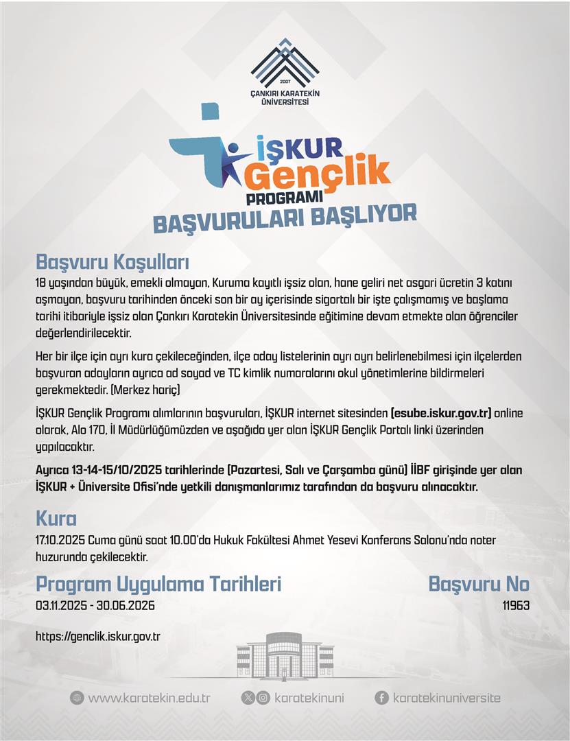 Başvuru Tarihleri: 11-15 Ekim 2025