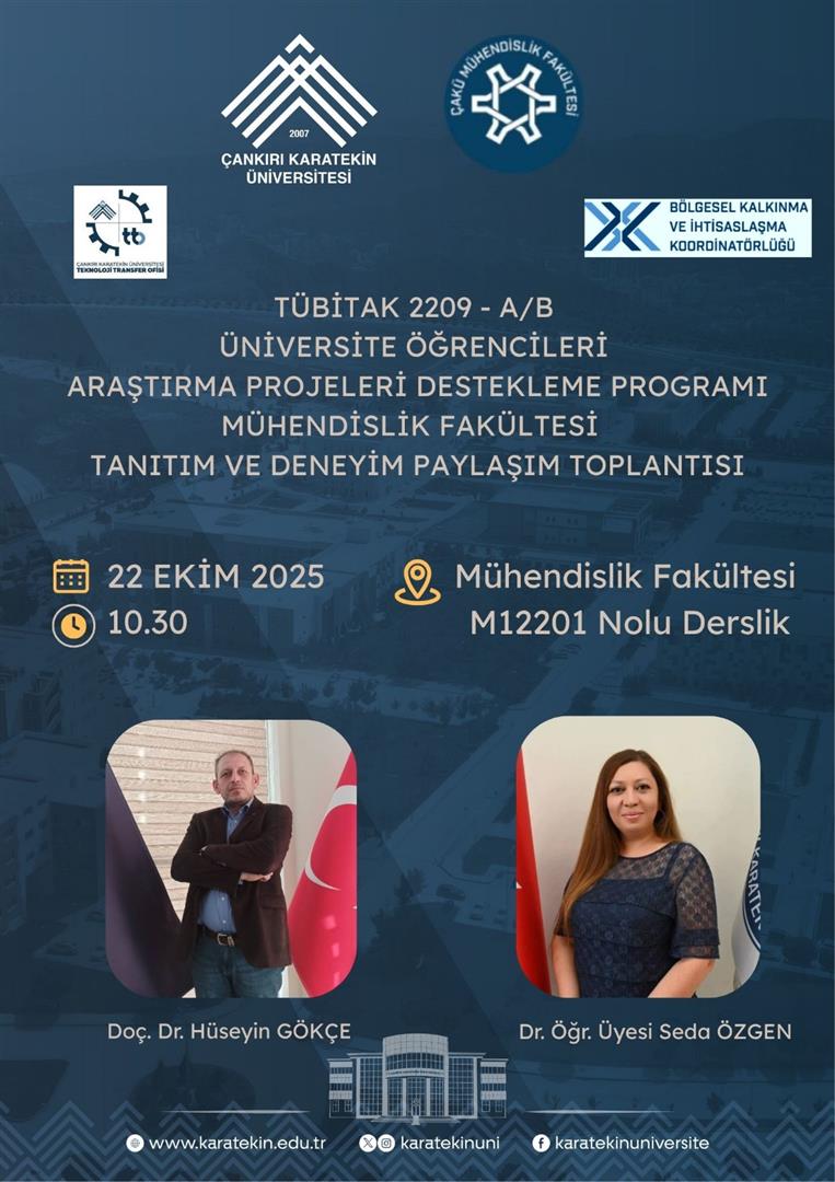TÜBİTAK 2209 –A/B Araştırma Projeleri Destekleme Programı Mühendislik Fakültesi Tanıtım ve Deneyim Paylaşım Toplantısı